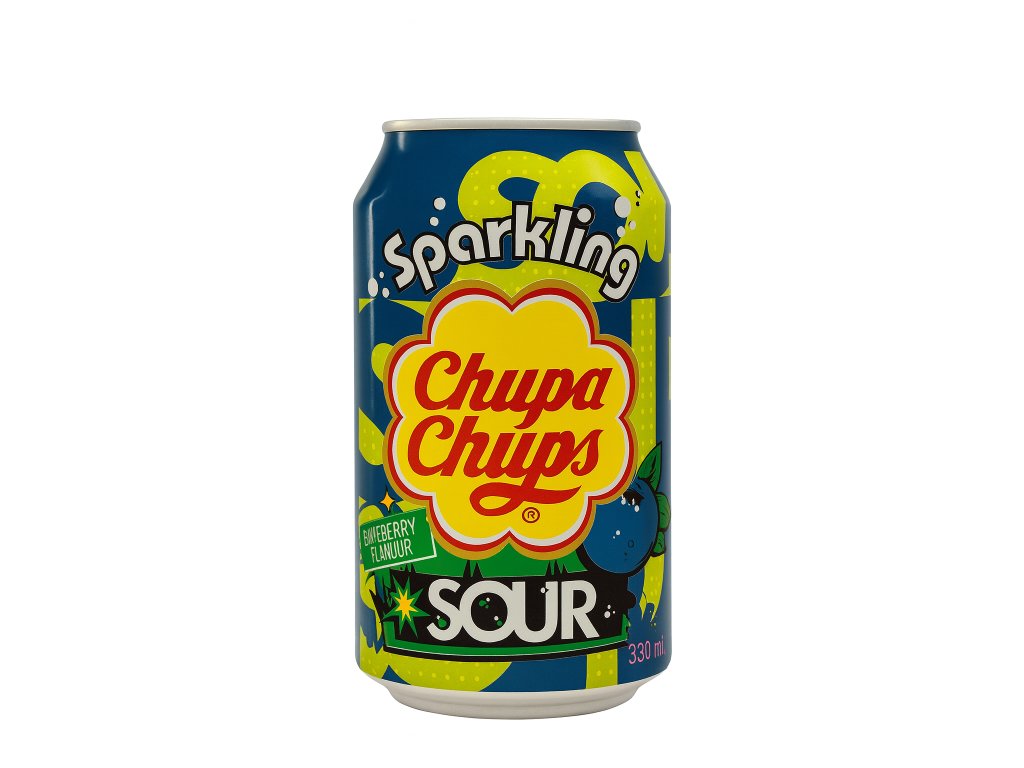 Nápoj Chupa Chups Sparkling Sour Blueberry 345 ml kombinuje sycenou vodu se sladko-kyselou chutí borůvky, připomínající oblíbené lízátko značky Chupa Chups.