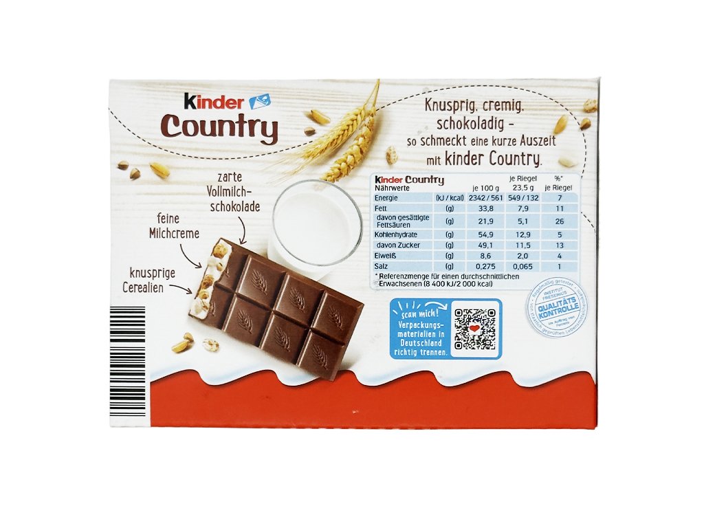 mléčná čokoláda (cukr, plnotučné mléko v prášku, kakaová hmota, kakaové máslo, sladká syrovátka v prášku, emulgátory: lecitiny (slunečnicové, sójové), vanilin),