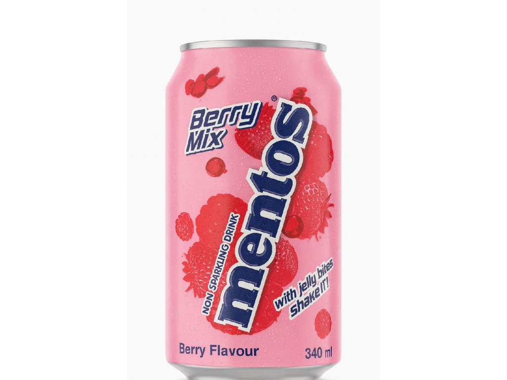 Vyzkoušejte lahodné osvěžení s nápojem Mentos Berry Mix, který spojuje chuť čerstvých lesních plodů s jemnými kousky želé nata de coco.