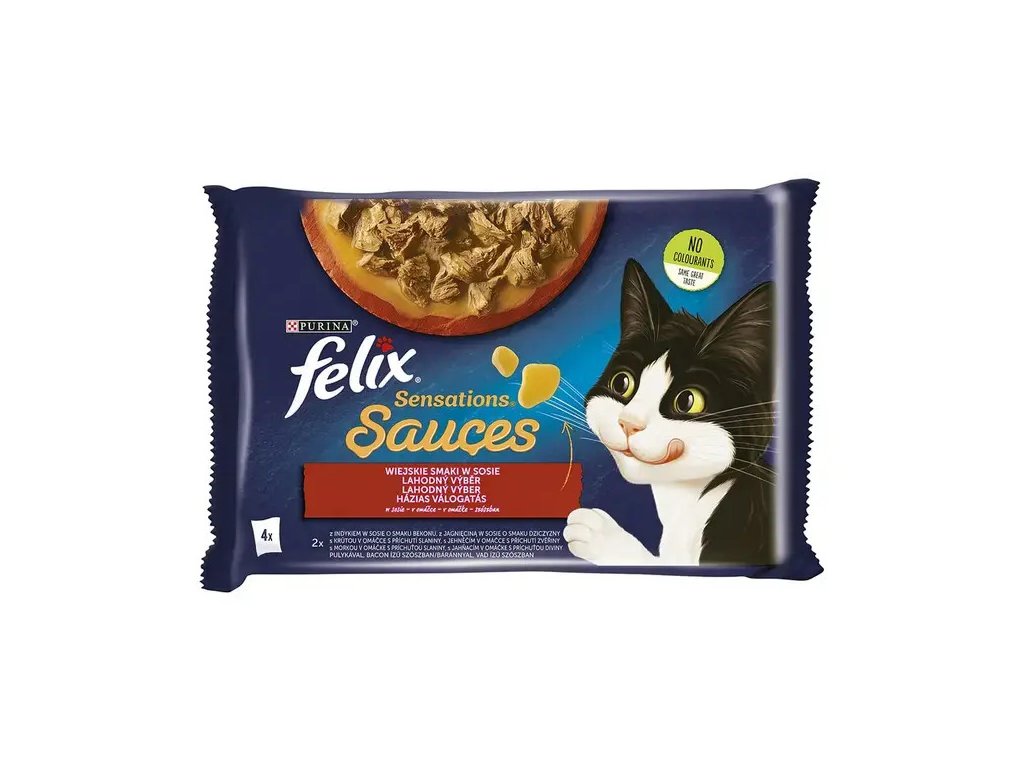 SloženíS krůtou v omáčce s příchutí slaniny: maso a výrobky živočišného původu* (16 %, z toho krůta 4 %), bílkovinné extrakty rostlinného původu, ryby a vedlejší výrobky z ryb, minerální látky, cukry, *kousky: 46 % masa a výrobků živočišného původu, S jehněčím v omáčce s příchutí zvěřiny: maso a výrobky živočišného původu* (16 %, z toho jehněčí 4 %), bílkovinné extrakty rostlinného původu, ryby a vedlejší výrobky z ryb, minerální látky, cukry, S kachnou v omáčce s mrkví: maso a výrobky živočišného původu* (16 %, z toho kachna 4 %), bílkovinné extrakty rostlinného původu, ryby a vedlejší výrobky z ryb, minerální látky, zeleniny (0,7 % sušené mrkve, odpovídá 6,3 % mrkve v omáčce), cukry, S hovězím v omáčce s rajčaty: maso a výrobky živočišného původu* (16 %, z toho hovězí 4 %), bílkovinné extrakty rostlinného původu, ryby a vedlejší výrobky z ryb, zeleniny (0,9 % sušených rajčat, odpovídá 8,1 % rajčat v omáčce), minerální látky, cukry