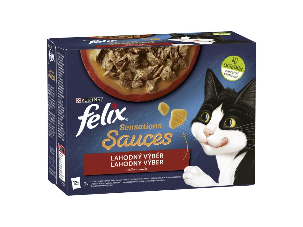 Purina Felix Sensations Sauces s hovězím, jehněčím, krůtou a kachnou v lahodné omáčce Platysem 12ks