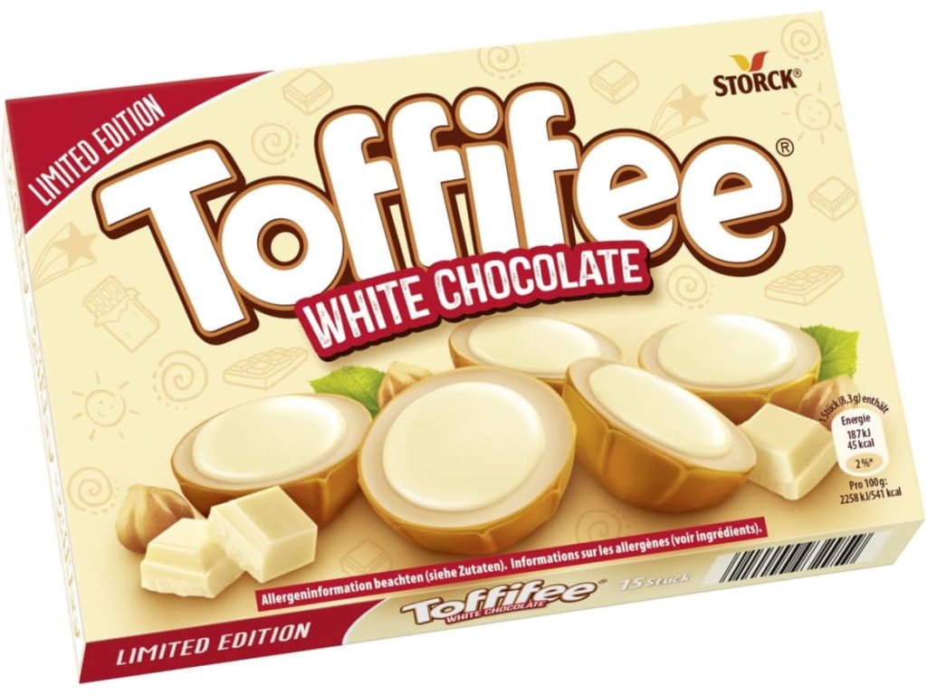 Cukr, lískové ořechy (12 %), sušené plnotučné mléko, palmojádrový olej, glukózový sirup, kakaové máslo, sušené odstředěné mléko, mléčný tuk, kakaový prášek s nízkým obsahem tuku, emulgátor: lecitin (SOJA), přírodní aroma, sůl.